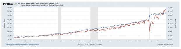 The next chart I show has Beer, Wine, and Liquor Stores and Restaurants and Other Eating Places.
