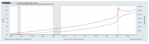 So much for COVID having accelerated the e-commerce spending advance! That did not happen.